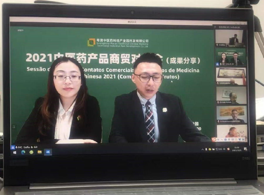 為了深化對(duì)接成果、鞏固溝通渠道,北京時(shí)間12月9日晚7時(shí),粵澳合作中醫(yī)藥科技產(chǎn)業(yè)園成功舉辦了“2021中醫(yī)藥產(chǎn)品商貿(mào)對(duì)接會(huì)(成果分享)”,定向邀請(qǐng)通過(guò)產(chǎn)業(yè)園平臺(tái)真正實(shí)現(xiàn)走出去的企業(yè),與來(lái)自巴西、葡萄牙、莫桑比克、佛得角及泰國(guó)的政府部門(mén)代表、專家和經(jīng)銷商60余人一同展示中醫(yī)藥服務(wù)貿(mào)易成果,分享中醫(yī)藥國(guó)際合作經(jīng)驗(yàn)。