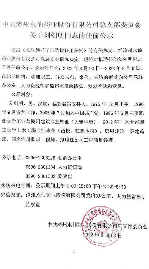 5月26日下午,武漢生物產(chǎn)業(yè)基地辦投資服務中心主任嚴興春一行蒞臨漳州水仙藥業(yè)股份有限公司調(diào)研。水仙藥業(yè)黨總支書記、董事長林燕榕、行政副總經(jīng)理陳杜滿等公司領導陪同調(diào)研。