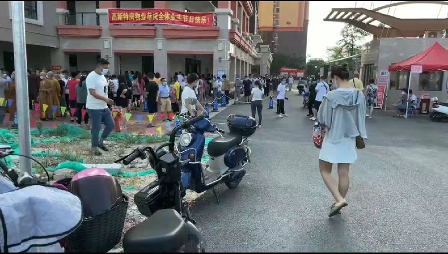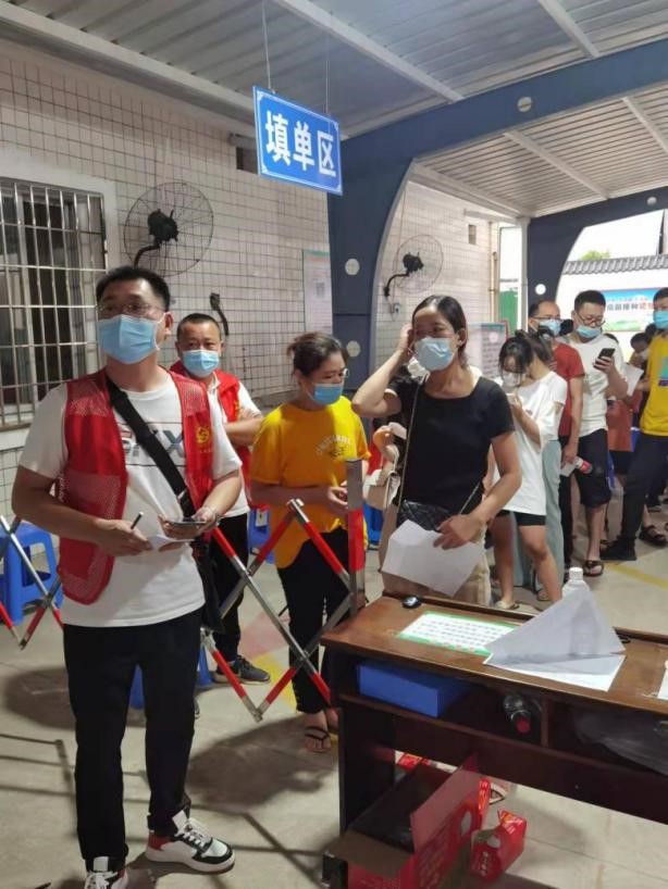 圖為支部黨員先鋒隊(duì)引導(dǎo)員工核酸檢測(cè)
